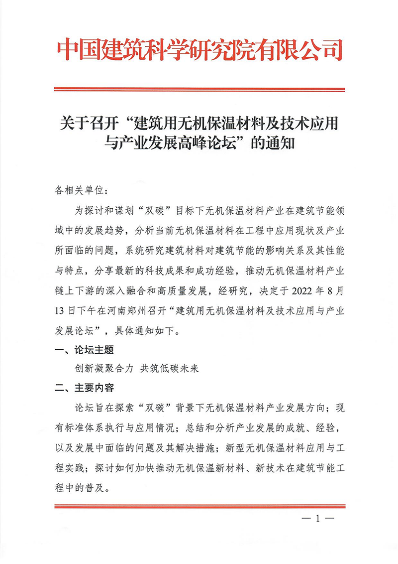 關于召開“建筑用無機保溫材料及技術應用與產業發展高峰論壇”的通知